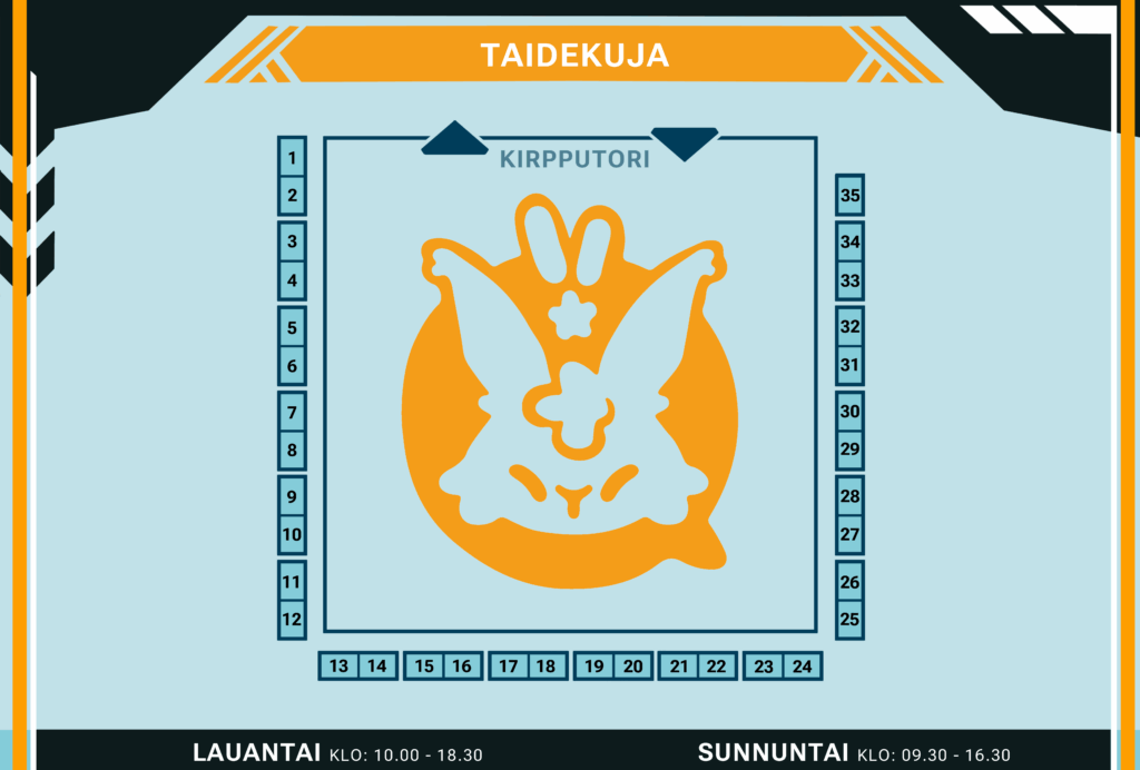 Moi! Olen kuvittaja ja graafisen suunnittelun opiskelija Jyväskylästä! Pöydältäni löytyy tuotteita esimerkiksi printtien, charmien, pussukoiden, tarrakirjojen sekä akryyli standien muodossa. Originaalin taiteen ja söpöjen olioiden lisäksi sarjoista edustettuina löytyvät muiden muassa Delicious in dungeon, Witch hat atelier, FFXIV, Frieren, Genshin, Honkai Starrail sekä Heaven’s Officials Blessings. Tapahtuman lähestyessä someistani löytyy myös katalogi tarjonnastani!